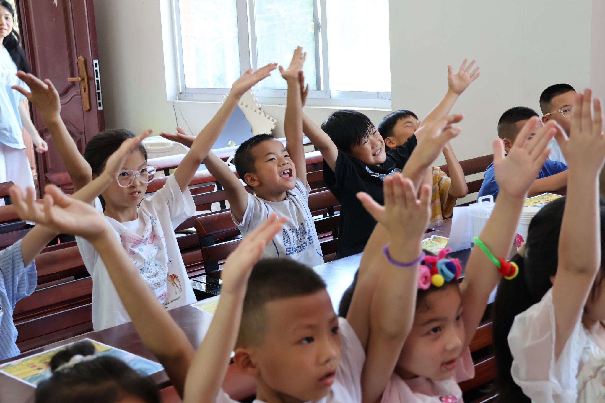 团队践行“以美育人”教育理念,依托舞蹈和诗歌朗诵两种艺术形式,让孩子们在欢声笑语中收获成长。活动中,队员们带领孩子们跳起了活泼可爱的“猪猪侠”儿童舞蹈。欢快的节奏和精彩的动作,迅速点燃了课堂氛围,让孩子们在音乐的律动中体验快乐。此外,团队还组织了《我爱祖国》诗歌朗诵活动,孩子们用清晰响亮的声音抒发心中对祖国的情感。