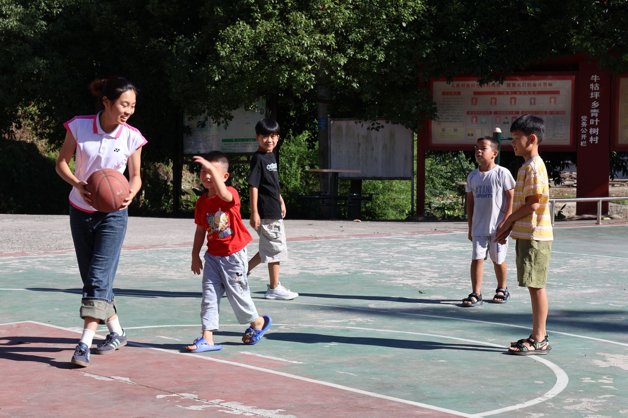 团队队员化身“体育能手”,以智趣相融的互动游戏,趣味十足的篮球竞赛,让孩子们在奔跑与跳跃中体验运动的快乐与团队的力量。活动场上,小运动员们运球突破的矫健身姿、此起彼伏的加油声,进球时绽放的笑脸交织在一起为乡村描绘了一幅充满生机与希望的画卷。