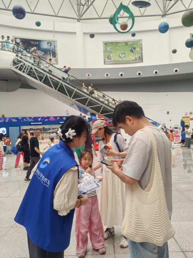 在拓展科普传播渠道方面,志愿者们创新服务形式,积极引导游客参与 “点赞打卡” 活动。通过扫码赠送精美贴纸的方式,巧妙地将科普知识融入趣味互动中。这种寓教于乐的方式,吸引了众多游客踊跃参与,让科学知识在轻松愉快的氛围中悄然传递。