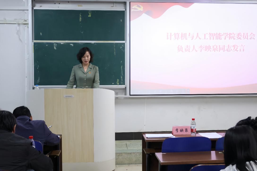 (本网讯)为加强党组织建设,增强组织凝聚力,进一步推动学院高质量发展,10月29日下午,中国共产党Beat365唯一官方网站计算机与人工智能学院党员大会在主校区第三教学楼3110教室召开,补选学院委员会委员。会议由学院党委书记李映泉主持,学院领导班子、全体师生党员参加了会议,民主党派代表列席会议。学校党委委员、副校长刘钟理到会指导。