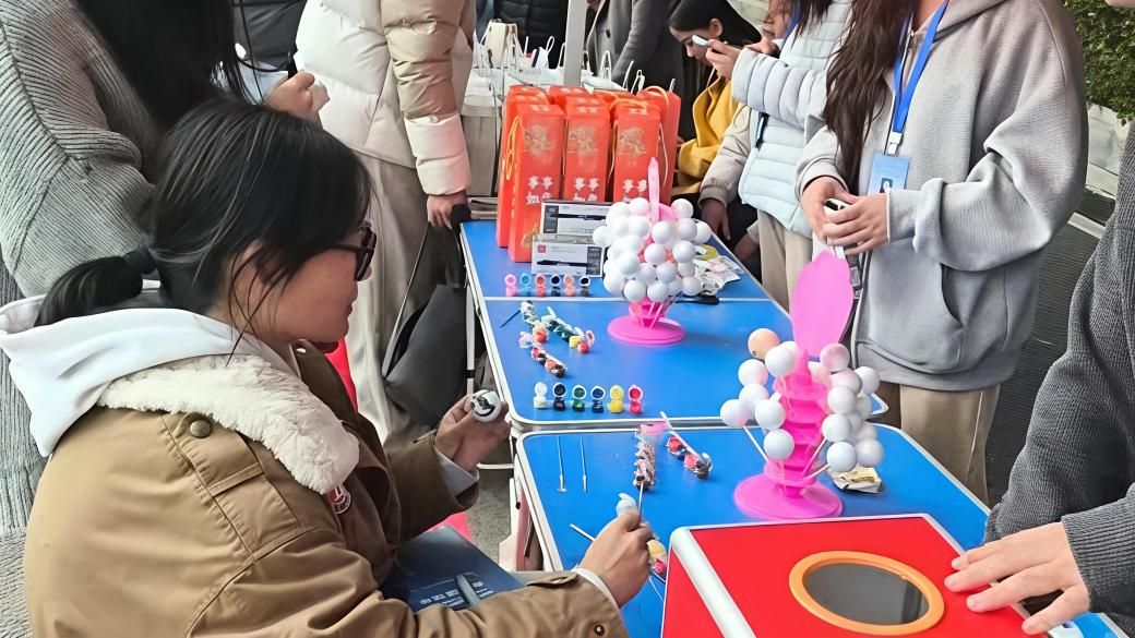 “情绪星球”解压体验区成为活动的一大亮点。学子们通过色彩绘画表达内心情绪,在艺术创作中实现情绪宣泄与压力释放;现场设置的考研涂鸦宣言墙,则为大家提供了情感表达的公共空间,成为凝聚斗志、相互激励的心理支持平台。现场还设有抽奖环节,学子在创作后可领取精美文创礼品,为备考生活增添惊喜。