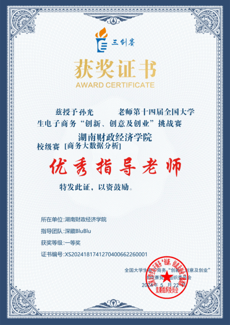孙光,博士,教授,数据科学与技术专业带头人,省级双一流课程主持人,“财经大数据资产开发与利用”湖南省高校2011协同中心执行负责人,湖南省教育工委优秀共产党员,湖南省青年骨干教师。