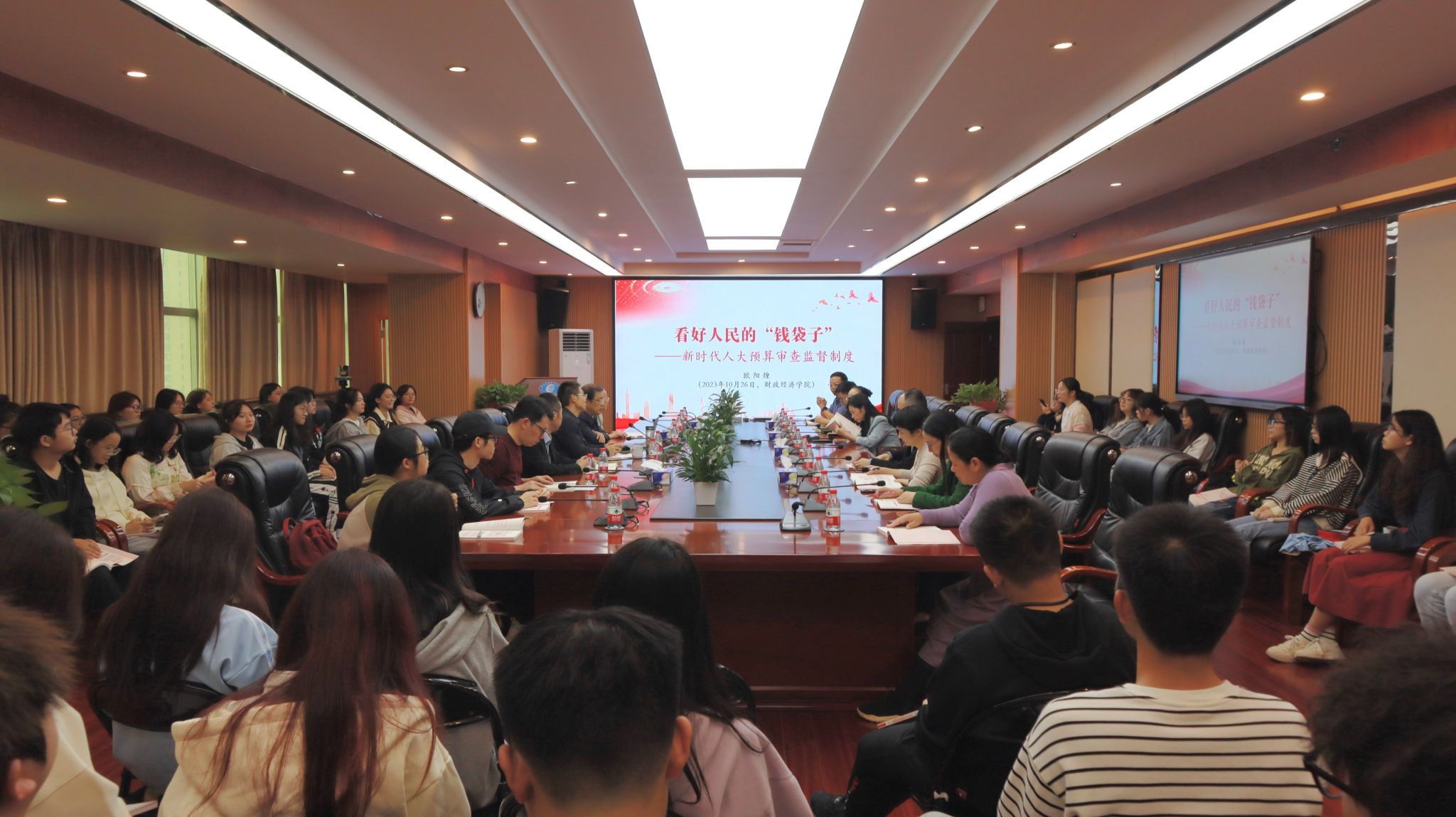 欧阳煌从历史发展和中西对比角度阐述了我国人民代表大会制度的形成与发展,人大及其常委会主要职权及监督方式、内容,新时代人大预算审查监督制度的改革与发展,以及新时代湖南省人大预算审查监督实践,重点从人大视角、法治思维阐述了人大如何正确、依法、有效行使财政预算监督权,“看好人民钱袋子”。
