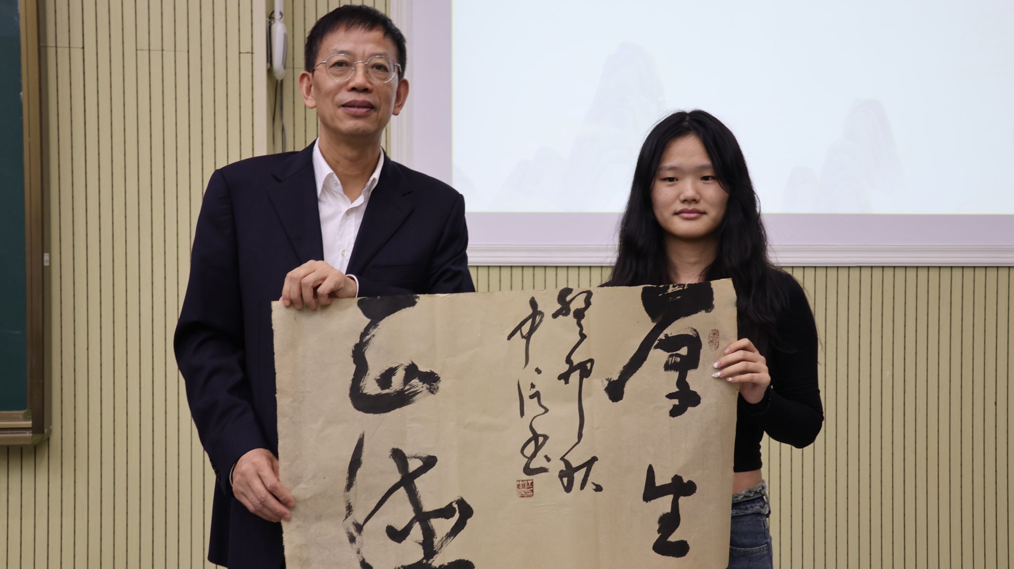 伍中信的观点深深吸引了在场师生,大家纷纷表示受益匪浅。讲座结束后,伍中信与师生们进行了热情互动,并向大家赠送了自己的书法作品。