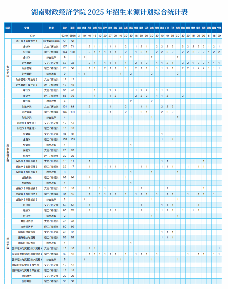 2025年招生来源计划综合统计表