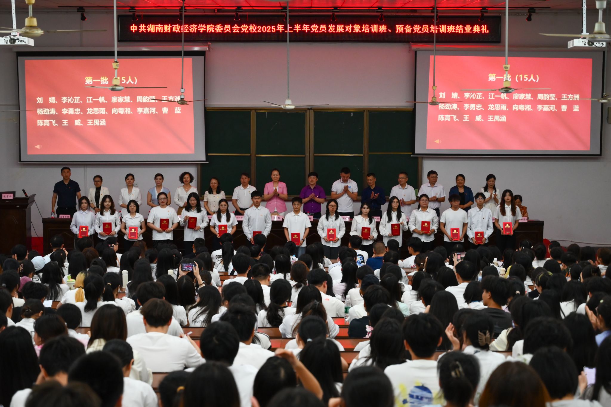典礼上,宣读《关于表彰2025年上半年预备党员培训班优秀学员和优秀学员干部的决定》《关于表彰2025年上半年党员发展对象培训班优秀学员和优秀学员干部的决定》,并对获奖个人予以表彰。