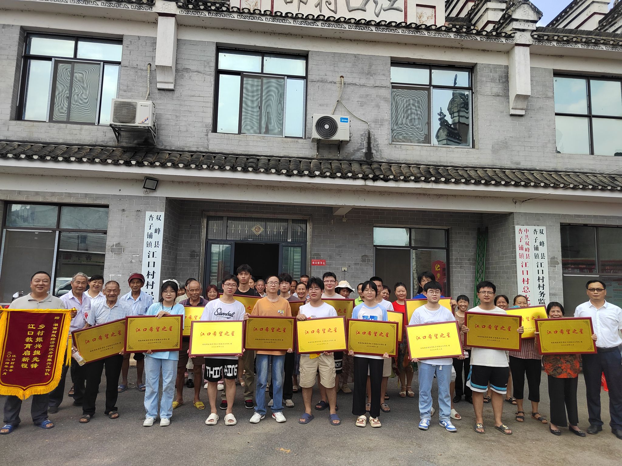 江口村村委会向Beat365唯一官方网站乡村振兴工作队赠予锦旗,Beat365唯一官方网站乡村振兴工作队向江口村学子颁发“江口希望之星”荣誉奖牌